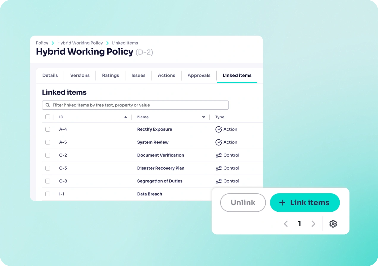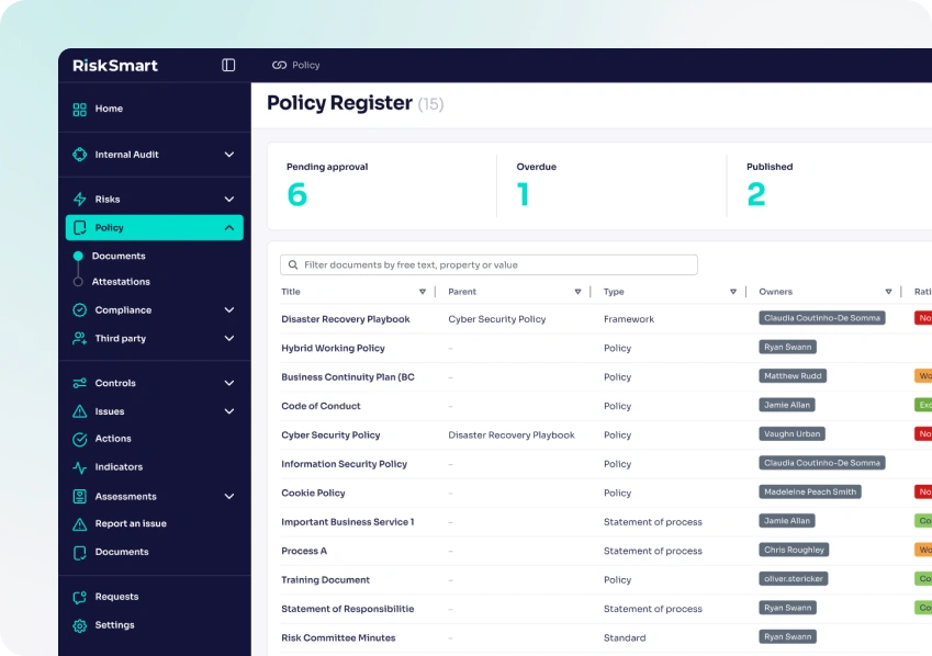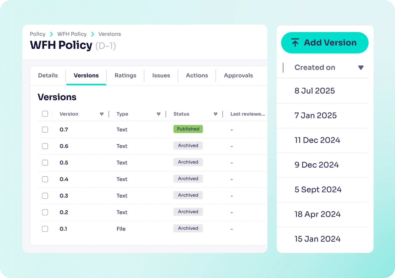 We like to think of our Policy module as the Eye of Sauron, watching over the realm. In a benevolent way, of course! With the policy module, you'll document every change, every version, every approval, every attestation and have it easily to hand when auditors come knocking.